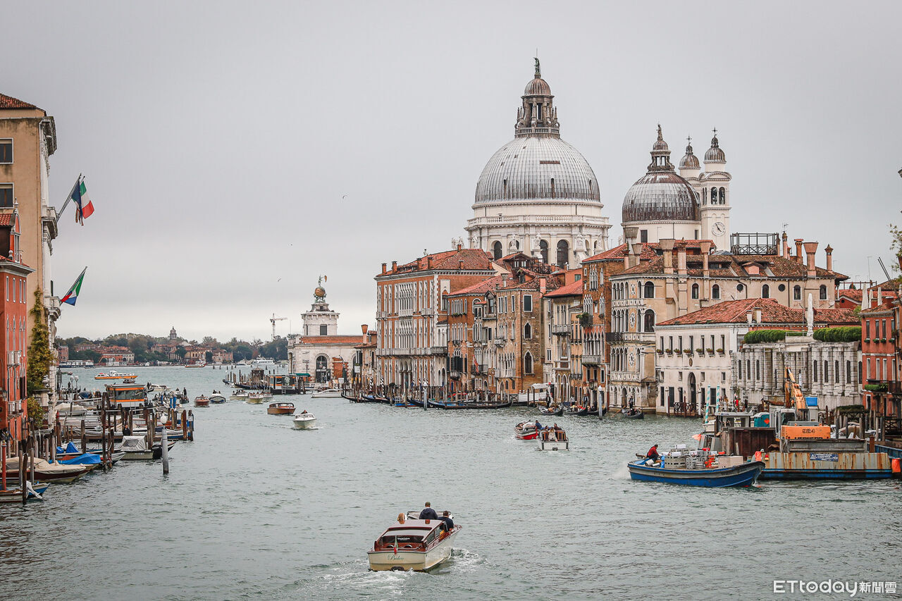 ▲從學院橋可以遠眺巴洛克建築圓頂的安康聖母教堂與運河景觀。(圖/記者蔡玟君攝)