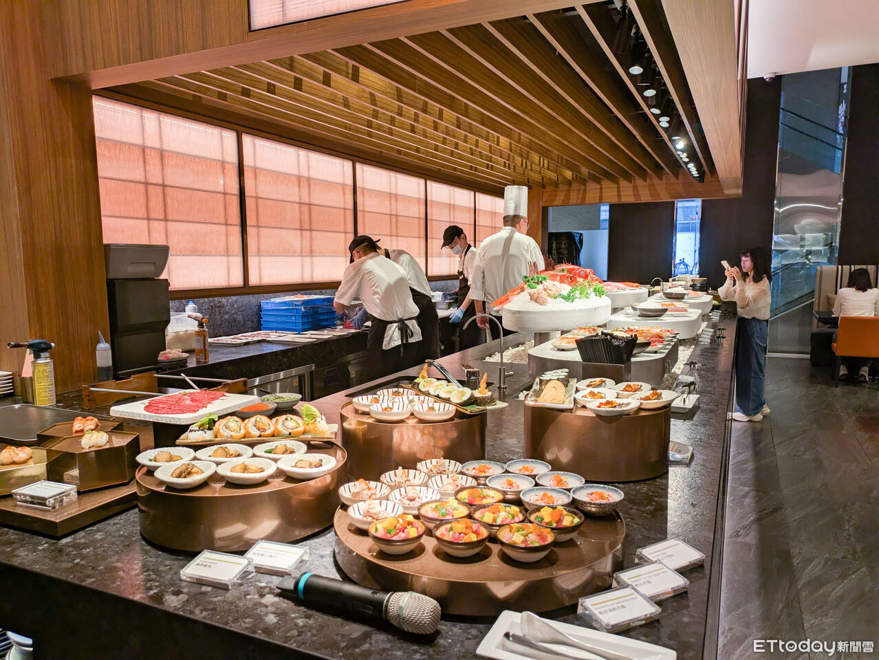 台北寒舍艾美酒店探索廚房去年啟動餐檯升級工程,並於10月重新開幕,改裝重點包括海鮮檯、日料檯升級,供應龍蝦、九孔鮑、生蠔、松葉蟹腳、干貝、海膽等高級食材,假日吃得到帝王蟹腳,海鮮品項超過50種,另有比臉還長的炙燒和牛握壽司。