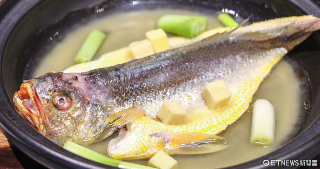 ▲百秒黃花魚。上選黃花魚,以明火現燜100秒即熟嫩上桌,充分體現黃花魚的鮮美原味。 。(圖/記者黃士原攝)