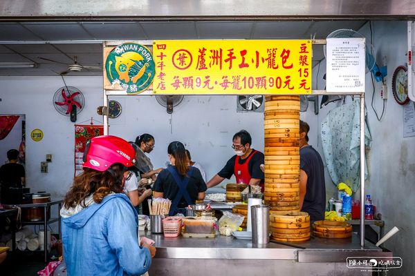 經過蘆洲信義街會看到這間「葉蘆洲手工小籠包」排隊人潮,營業時間早上6點半就開賣,是蘆洲在地人推薦必吃小籠包早餐,菜單就賣小籠包和豆漿,簡單的美味小吃。是蘆洲在地超過40年的人氣早餐店,以前還是小攤販就很受蘆洲人歡迎,現在店面生意也很好,平日包小籠包的工作人員就有7個,店裡也提供可內用的座位,不過外帶小籠包的人更多。