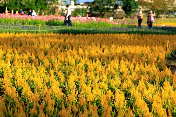 ▲鮮豔的黃色系火焰雞冠花,為花海增添活力。