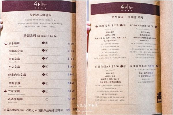 4F劇場咖啡古亭店菜單