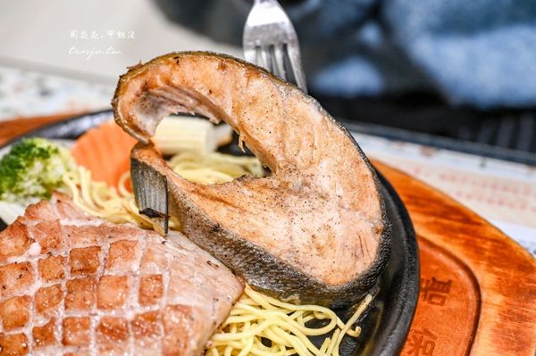 ▲鮭魚排建議可以直接吃原味,新鮮度夠其實不用太多調味,撒點胡椒鹽提味就很讚!