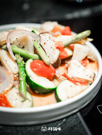 這道菜看似低調,但卻是我這次最意外喜歡的一道。蔬菜經過烤製,外層微焦,裡面還保有水分,不會烤得乾巴巴的。調味很有層次,帶著淡淡的奶香,還有香草的清香。