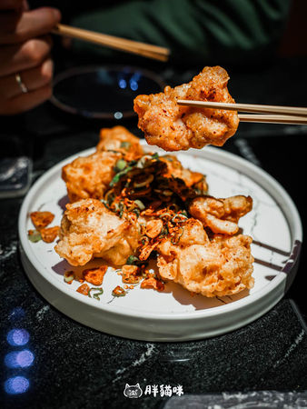 這道菜的炸法有點像日式唐揚雞,但多了一層濃郁的椒麻醬。外皮炸得酥脆,但不會覺得油膩,裡面的雞肉則是鮮嫩多汁,搭配醬汁後,帶出微微的麻感和香氣,讓整體風味更加突出。我本來擔心這道會太辣,但實際上它的辣度很剛好,主要是香氣比較突出,還帶點回甘的感覺,非常適合搭配酒。