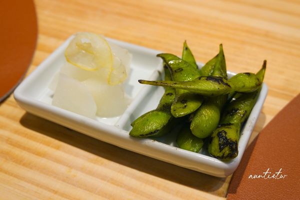 先上了小菜,有酸甜醃蘿蔔以及炙燒毛豆,兩道都好吃,因為湯頭偏鹹,可以吃點醃蘿蔔解解膩,毛豆炙燒過則是香味更突出。