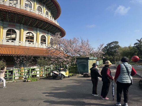 另外,淡水無極天元宮壓軸的櫻花盛開了!廟方今稍早通報,目前全區吉野櫻開約1成至4成;景觀處表示,先前有請櫻花專家前來健檢時表示,預計3月中下旬到清明前後會開花,主要取決於天候狀況。