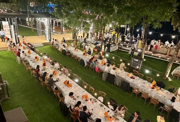 ▲中間有一塊人工草皮區,可供舉辦大型活動、婚禮,當天就正好有人在辦婚禮,宴開上百人熱熱鬧鬧的。