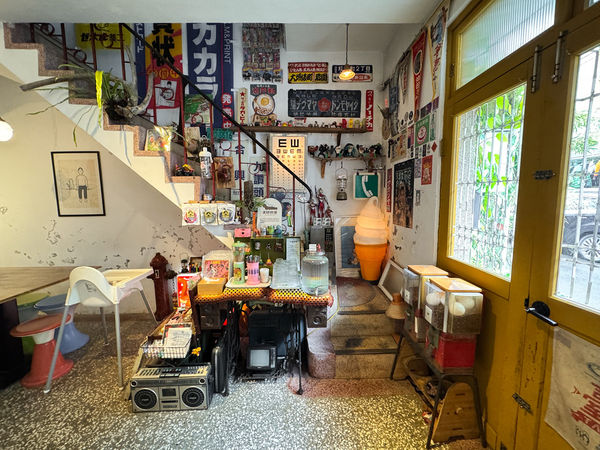店家收藏了許多復古老物件與物品,像是老花窗製成桌面、黑膠唱片、老電話、木製桌椅等,每一處角落都充滿故事,讓人彷彿回到了過去的時光。