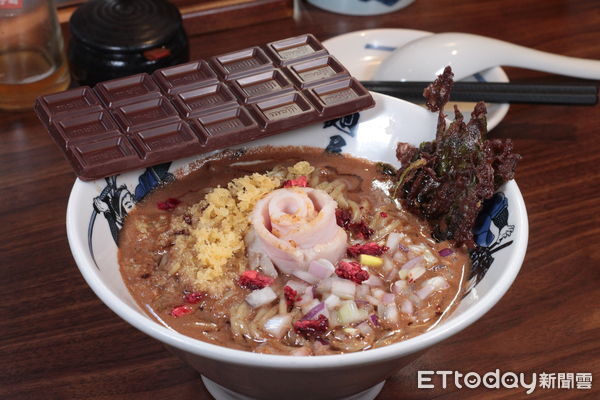 另外,迎接七夕情人節,麵屋武藏推出期間限定話題新品「巧戀七夕濃厚拉麵」,把70%苦甜巧克力與蛋黃製成醬底,再與桂丁雞高湯融合,湯頭濃厚滑順、香氣層次豐富,帶有熱可可般的尾韻與厚度,挑戰消費者對傳統拉麵的風味印象。主菜叉燒則以煙燻肉捲精巧捲製成玫瑰花造型,視覺上呼應七夕浪漫主題。