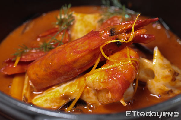 「馬賽魚湯」是普羅旺斯經典料理,以濃郁湯底聞名,最初是漁夫以當日漁獲熬煮的家常湯品。湯底以魚骨、蟹殼與蝦殼搭配大量蔬菜拌炒後熬煮,加入番紅花與茴香酒,搭配大蒜番紅花蛋黃醬與葛瑞爾起司,呈現濃厚海味與香料風味。