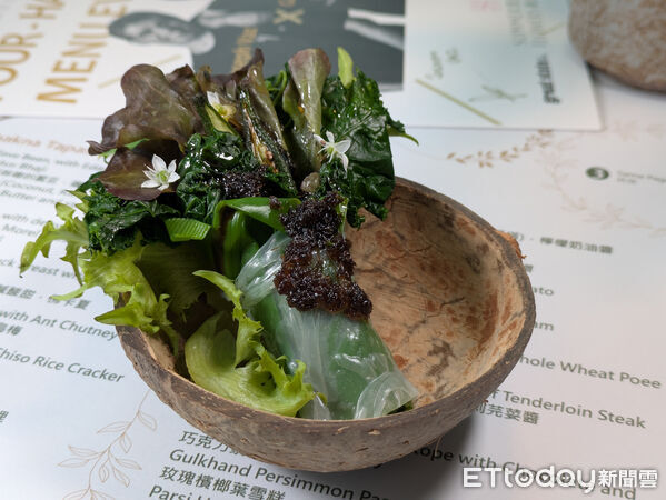 ▲以螞蟻入菜的「野菜沙拉」。(圖/記者黃士原攝)