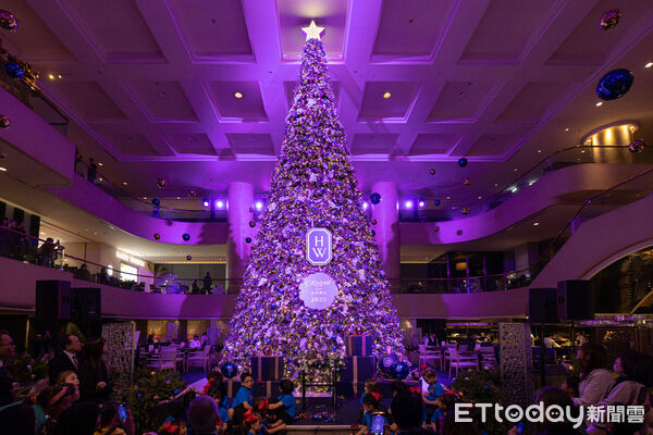 ▲台北晶華酒店點亮全台室內最高聖誕樹。(圖/晶華提供)