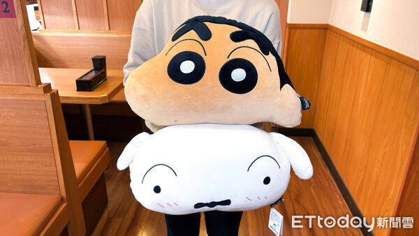 ▲「蠟筆小新絨毛抱枕」、「小白絨毛抱枕」。(圖/藏壽司提供)