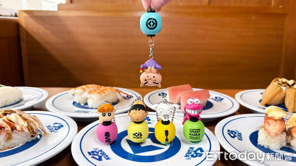 ▲動感十足的「蠟筆小新公仔吊飾」共有5款。(圖/藏壽司提供)